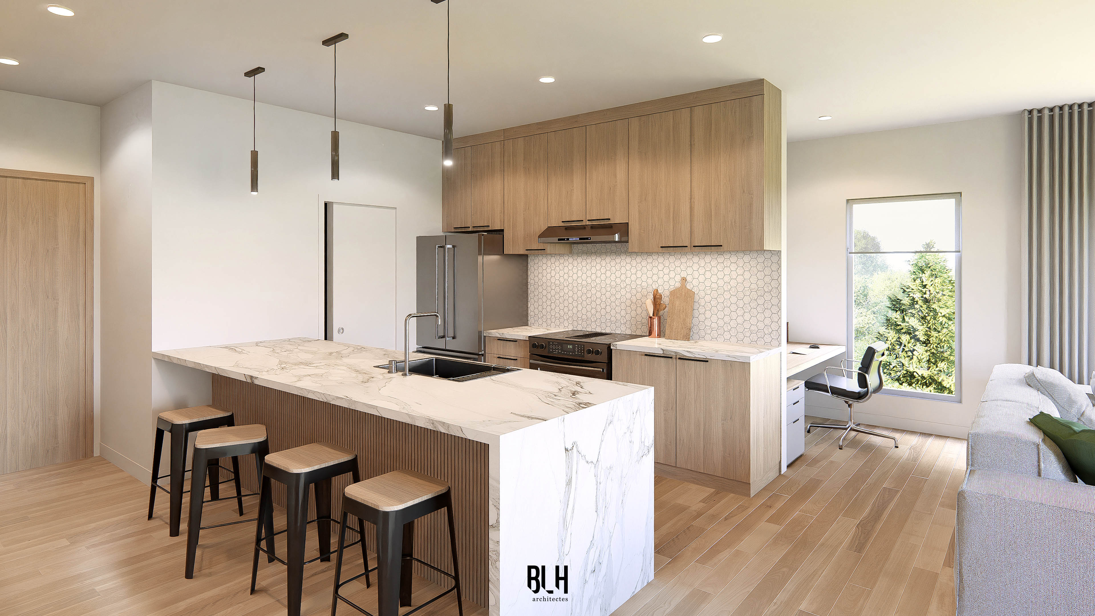 - Plafonds de 9 pieds pour une sensation d’espace et de lumière naturelle.